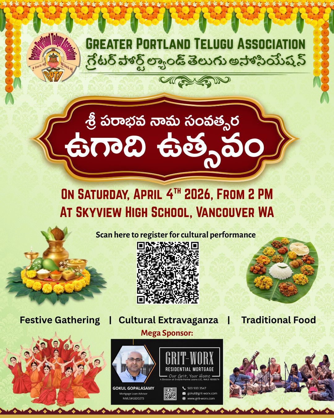 Warm welcome to all patrons of Greater Portland Telugu Association! A heartfelt "Thank you" to our sponsors, committee members, volunteers, participants, and the entire community, for the continued support! Looking forward to another fruitful year with all of us coming together, to celebrate our rich culture, language, and heritage.